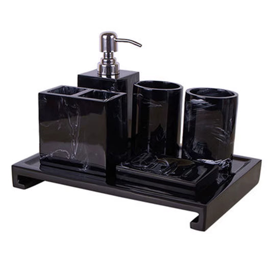 Black Marble Pattern Tray Resin Bathroom Set Toothbrush Holder Soap Dispenser Soap Dish Men'S Bathroom Accessories Set Home Deco